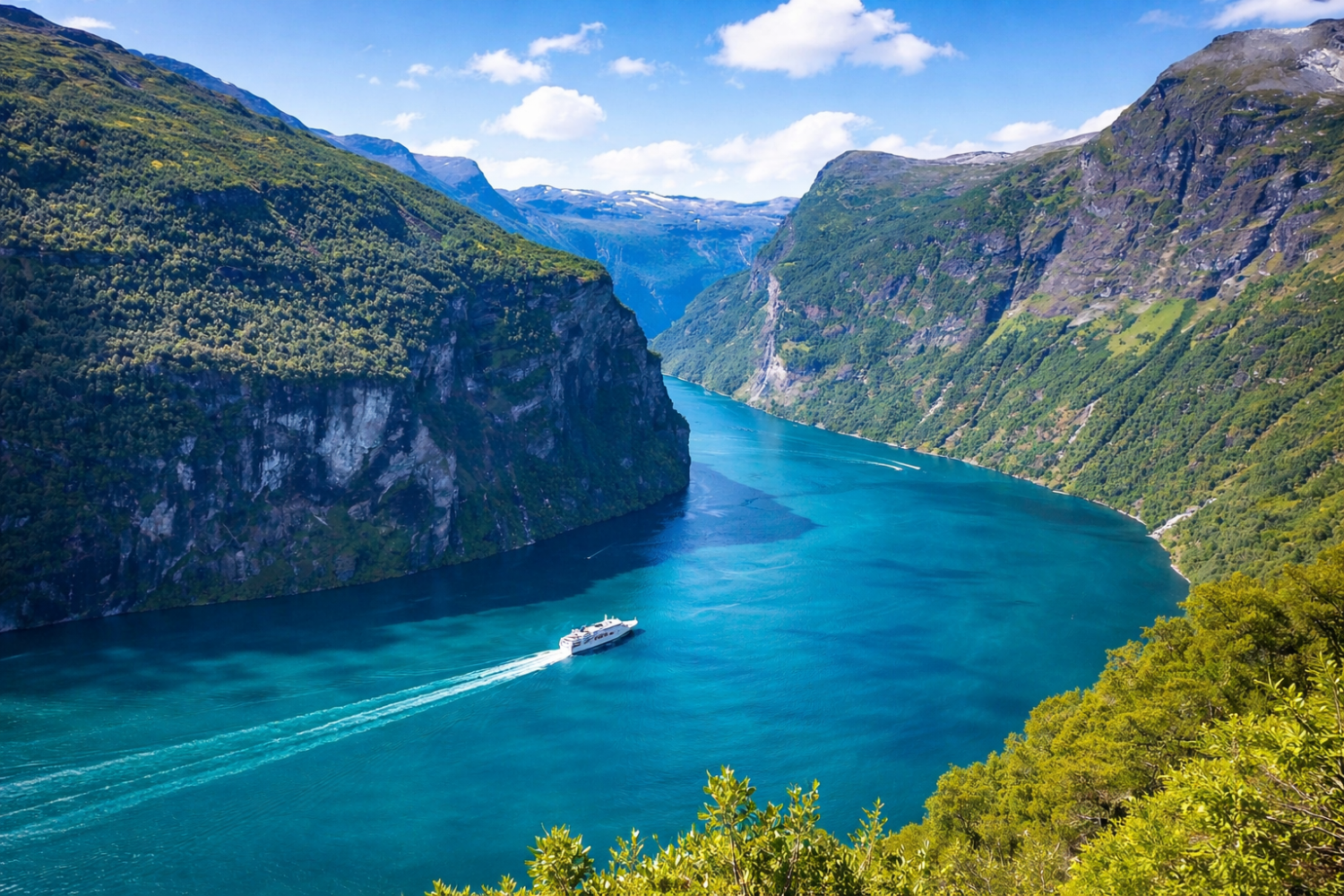 After breakfast, depart for Geiranger and embark on a spectacular sightseeing cruise along the Geirangerfjord, one of Norway’s narrowest and most dramatic fjords. Marvel at towering cliffs and iconic waterfalls, including the legendary Seven Sisters and Bridal Veil.